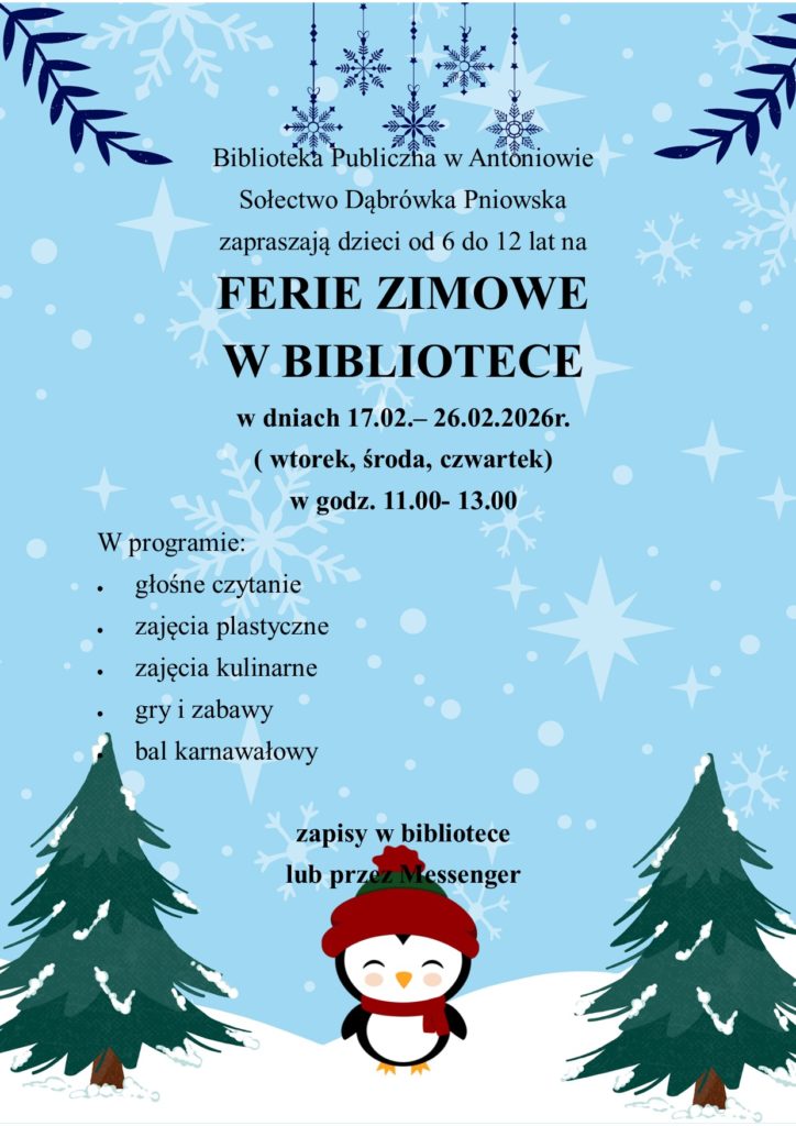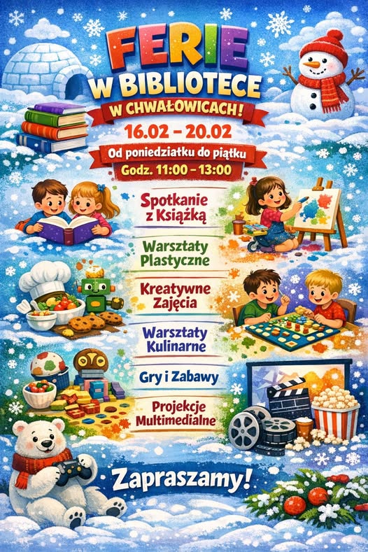 AKTUALNOŚCI Ferie w Gminnych Bibliotekach 12 lutego 2026 Poprzedni Konkurs na Maskę Karnawałową Nowsze Konkurs plastyczny - Dzień Kobiet Zobacz również Hubertus Nadsański 2022 29 września 2022 Ferie w bibliotece- fotorelacja 19 lutego 2024 Noc Bibliotek 2024 31 października 2024 Dodaj komentarz Anuluj pisanie odpowiedziTwój adres e-mail nie zostanie opublikowany. Wymagane pola są oznaczone *Nazwa * Adres e-mail * Witryna internetowa Komentarz Δ
