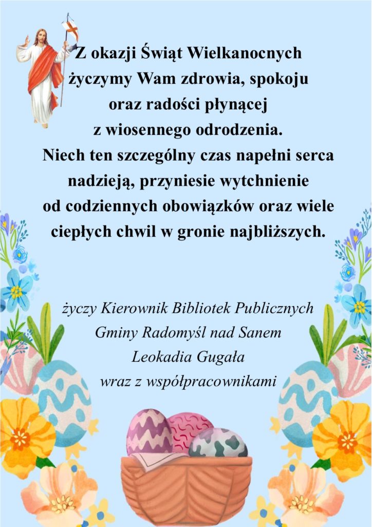 AKTUALNOŚCI Wesołego Alleluja! 1 kwietnia 2026 Poprzedni Wyniki konkursu na Palmę i Pisankę! Nowsze Spotkanie Wielkanocne Zobacz również Wesołych Świąt! 23 grudnia 2024 RADOMYSKIE CZYTANIE W PLENERZE 17 maja 2021 Wyniki konkursu 11 marca 2021 Dodaj komentarz Anuluj pisanie odpowiedziTwój adres e-mail nie zostanie opublikowany. Wymagane pola są oznaczone *Nazwa * Adres e-mail * Witryna internetowa Komentarz Δ